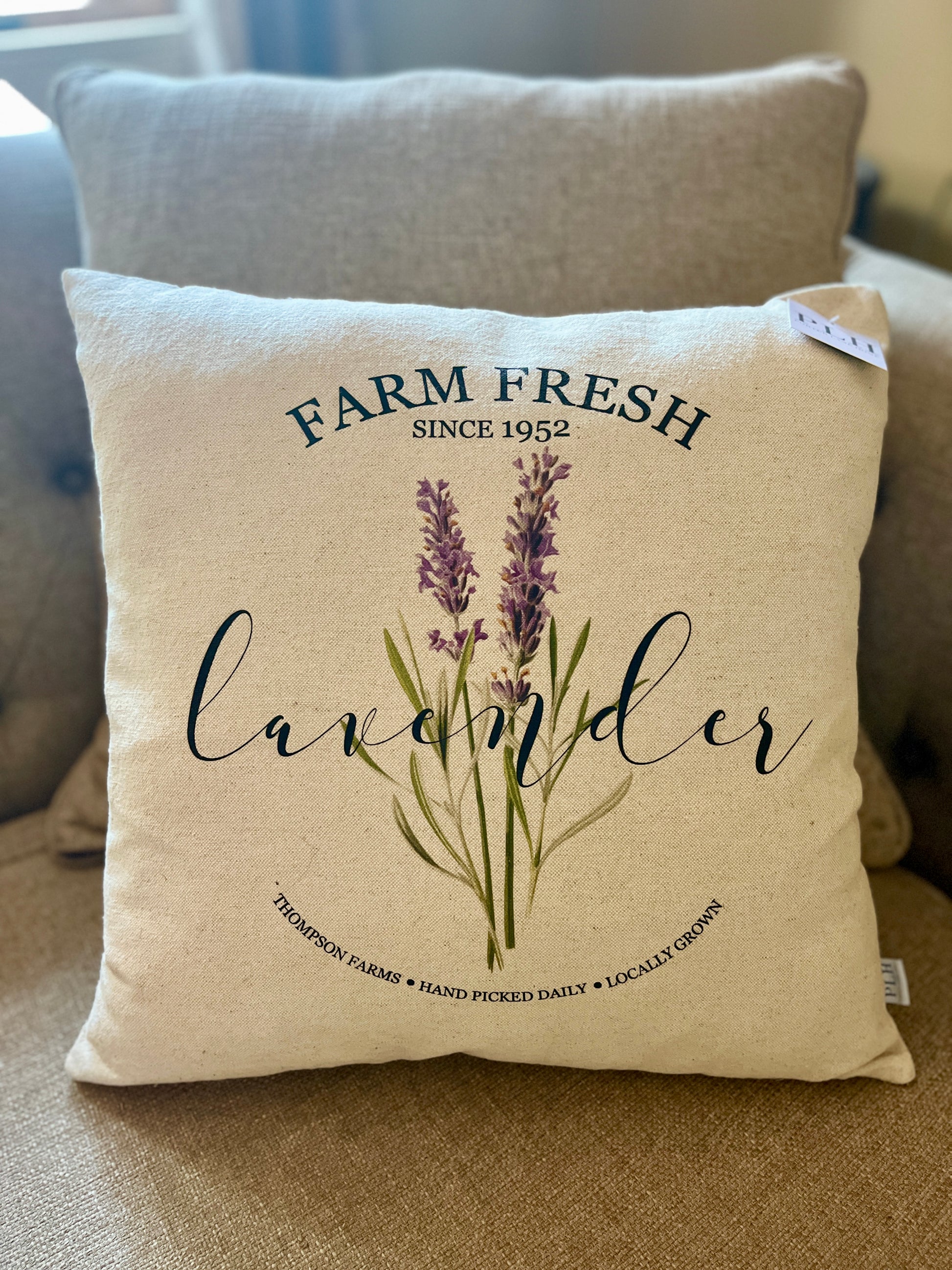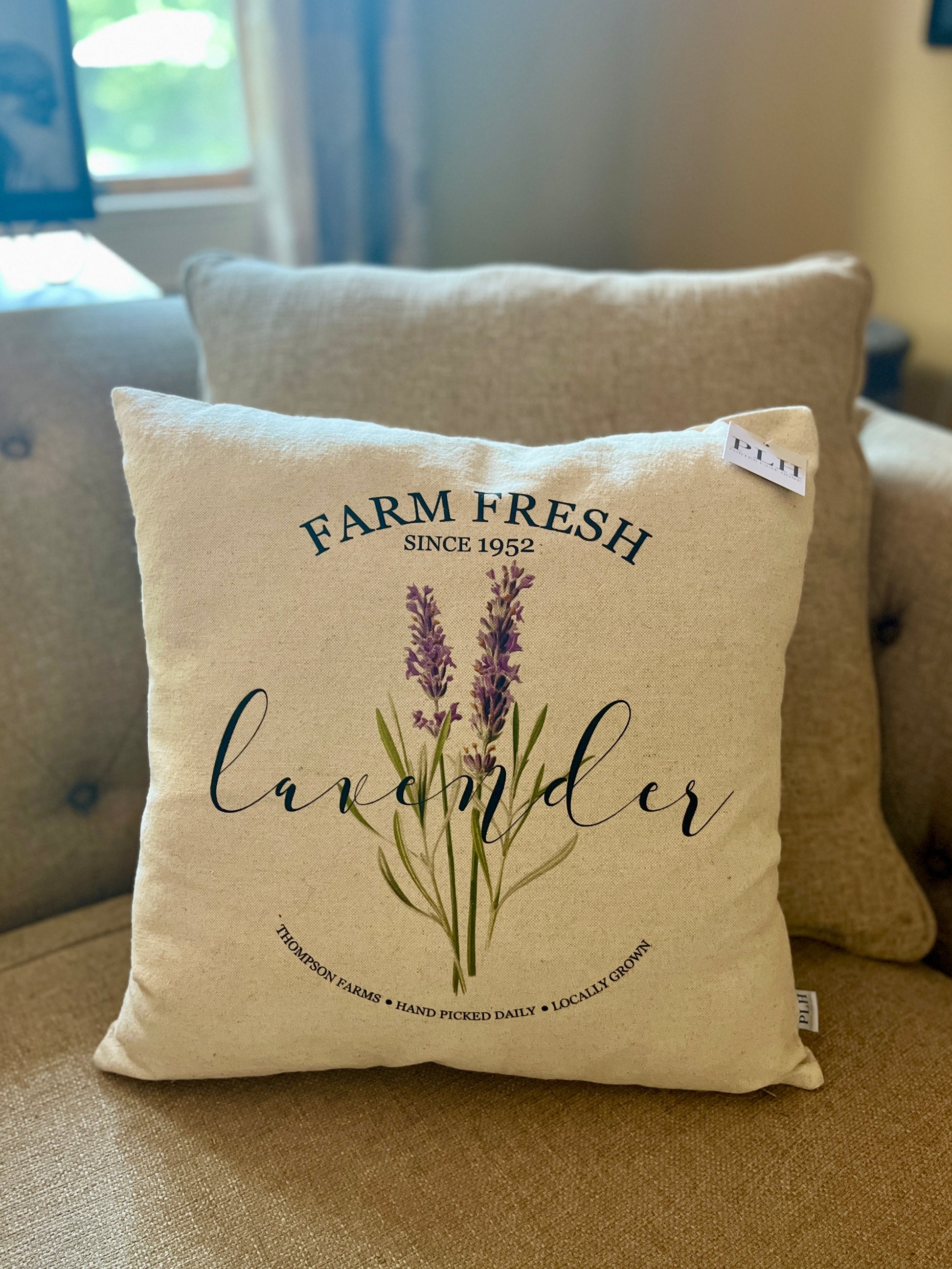 Liven up your space with this playful lavender print pillow. It's the perfect plush addition to any room, with gentle color and a farmhouse vibe.